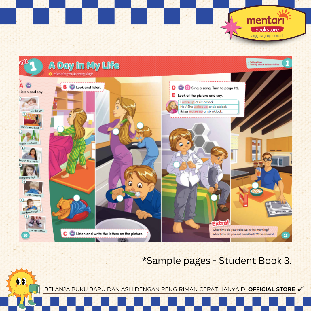 Melalui ilustrasi berwarna, bacaan menarik, dan komik yang seru, siswa diajak mengikuti kisah sebuah keluarga dalam keseharian mereka. Dengan cara ini, mereka dapat memperkaya kosakata, memahami tata bahasa umum, dan mempelajari berbagai ungkapan praktis.
