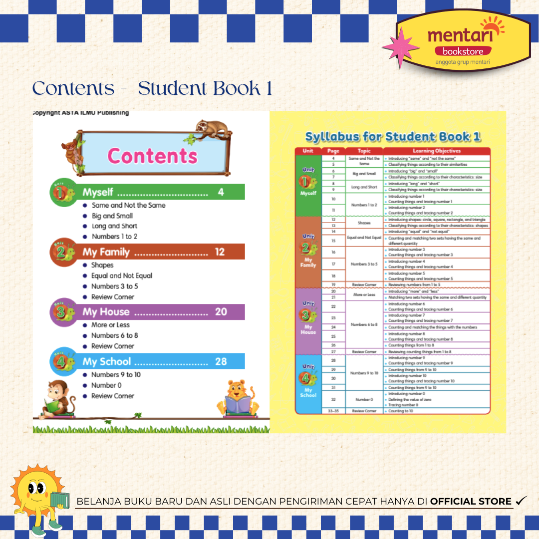 – Mengembangkan keterampilan awal melalui berbagai kegiatan terpadu, ilustrasi yang menarik, dan instruksi yang jelas.